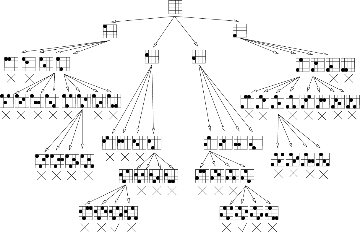 // programmers week5-5 // N-Queen // Backtracking #include <bits/stdc++.h> using namespace std; int chess[12]; int answer = 0; bool isValid(int depth) { for (int i = 0; i < depth; i++) { if (chess[depth] == chess[i] || abs(chess[depth] - chess[i]) == depth - i) return false; } return true; } void DFS(int n, int depth) { if (depth == n) { answer++; return; } for (int i = 0; i < n; i++) { chess[depth] = i; // queen 배치 if (isValid(depth)) DFS(n, depth + 1); } } int solution(int n) { DFS(n, 0); return answer; }