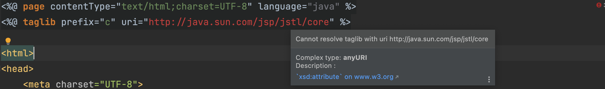 jsp로 view를 구현하던 중, <c:forEach> 기능을 사용하고자 taglib를 추가했다가 다음과 같은 오류를 마주했다.